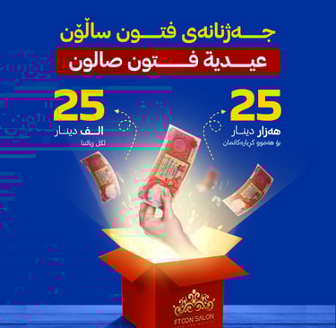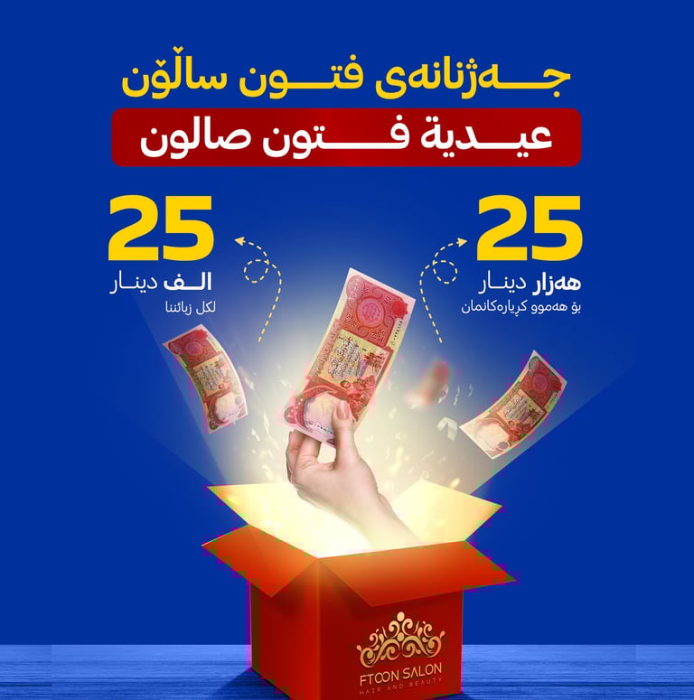 فتون صالون لاينسى زبائنه وأحبابه في العيد وحضر لكل زبون عيدية 25 الف دينار 🎉🎉